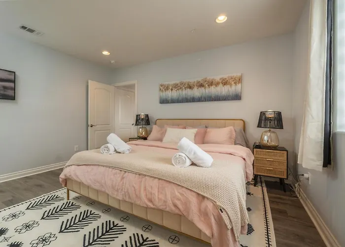 Die 139 m² große Ferienwohnung Angel & Rose * Hollywood Dtla befindet sich im Stadtviertel Hollywood von Los Angeles und bietet einen Blick auf die Stadt. Wachsfigurenmuseum Hollywood liegt ca. 6 Kilometer vom Apartment entfernt und West Coast University Los Angeles Extension Campus ist auch direkt nebenan.